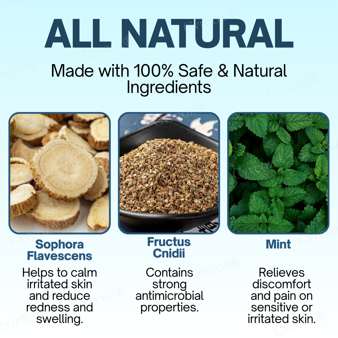 - Fructus Cnidii: With its powerful antimicrobial properties, this ingredient effectively combats harmful bacteria and prevents infections, making it ideal for maintaining clean and healthy skin while healing.