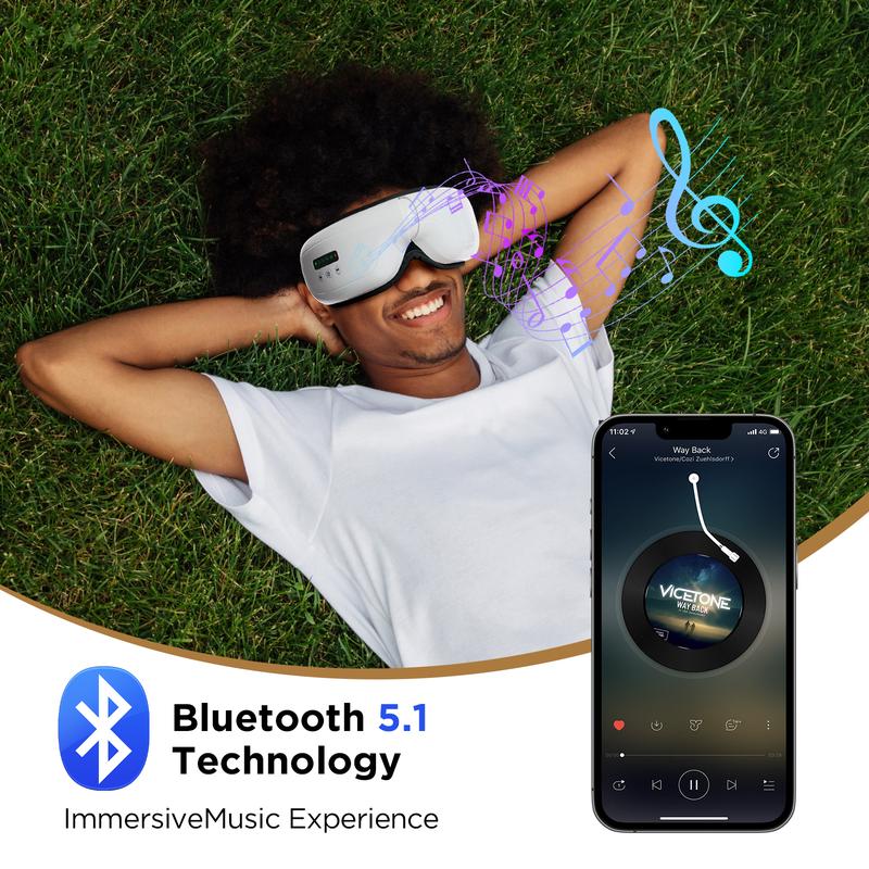 Choose your perfect relaxation experience with three unique massage modes—heat, air pressure, and compression—all adjustable with simple on-device controls. Whether you need gentle relief or a deep, invigorating massage, this eye massager adapts to your needs. Pair it with your favorite audio via Bluetooth for a truly personalized escape.