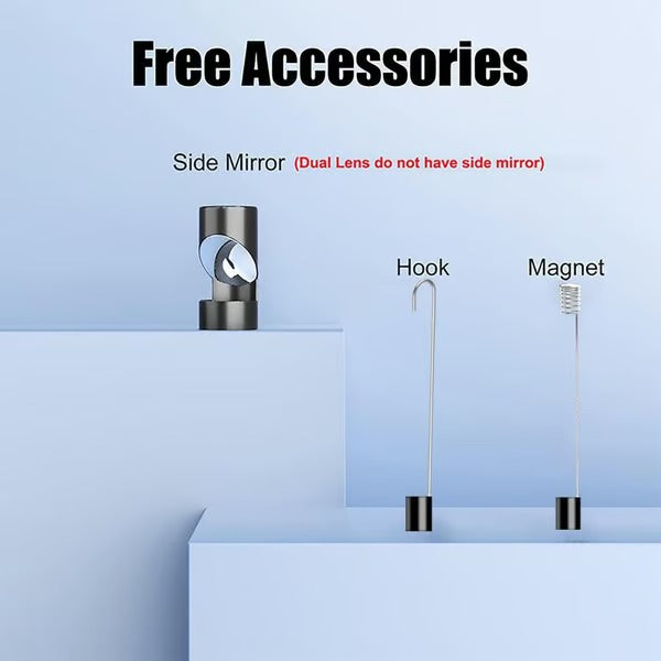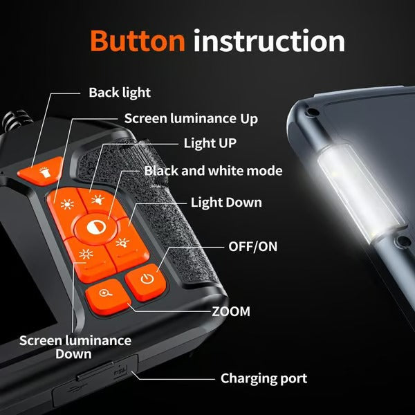 Dual Lens Industrial Endoscope Camera - This endoscope equipped with both 1080P front camera as well as a side view camera together on the probe, you can inspect with different view, make the inspection easier.